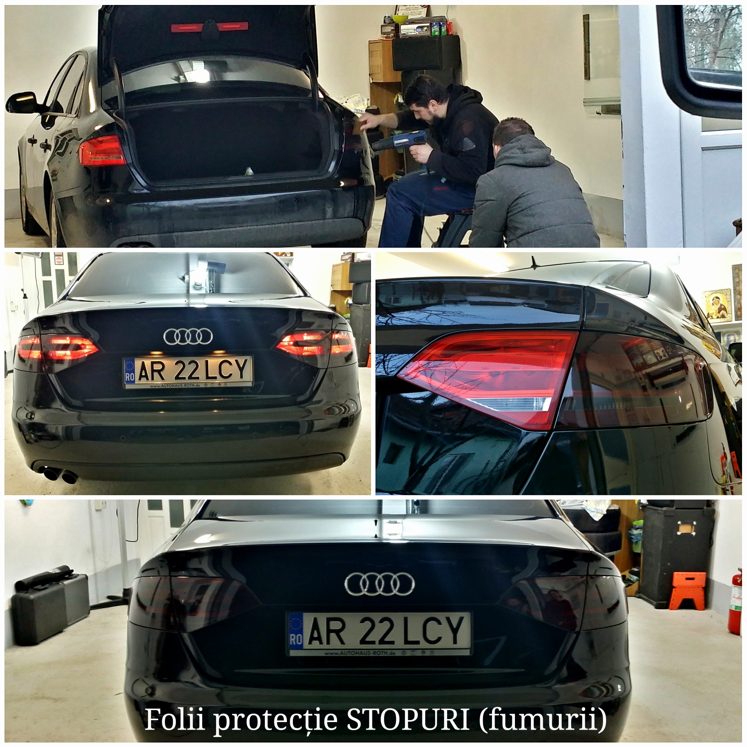 Folie TRANSPARENTĂ (faruri) sau FUMURIE (stopuri).